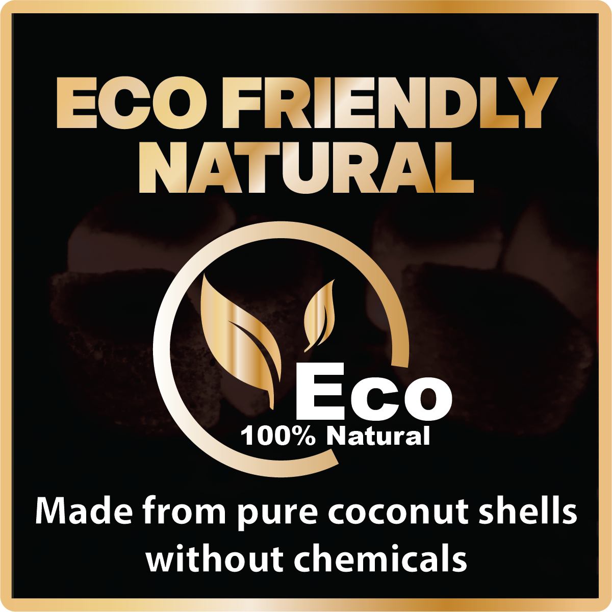 Our briquettes are made from 100% natural coconut shells without any chemical additives, resulting in a clean, smoke-free burn.